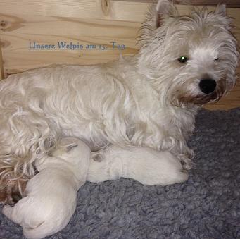 Die Äuglein haben beide nun schon seit 5 Tagen auf und auch ihre Pigmentierung wird immer kräftiger ebenso ihre Muskulatur. Beide sind in ihrer Wurfbox sehr aktiv und halten ihre Mutter mächtig auf Trapp.